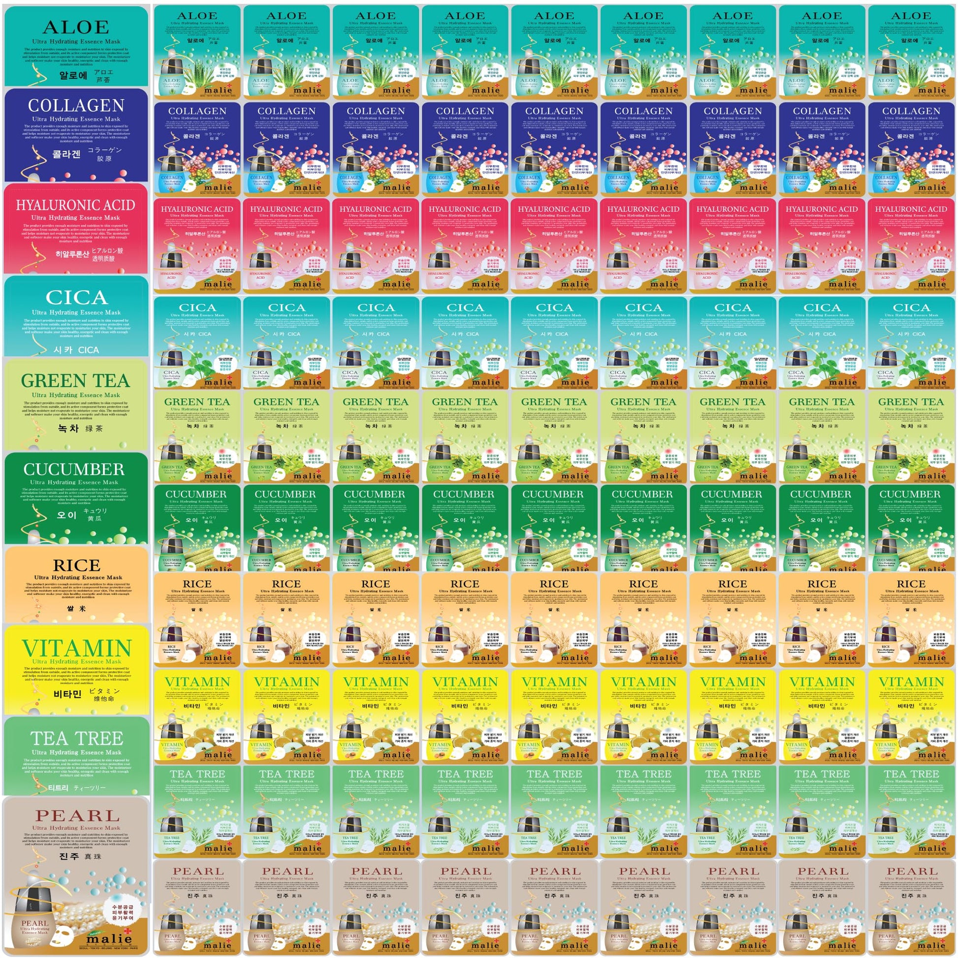 - 100 pcs Vegan Ultra Hydrating Essence Mask, KoreanFacial Mask Sheet (10 x 10 Types)