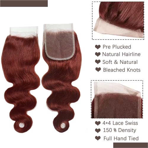 10A Cooper Red Human Hair Bundles with Closure Body Wave Reddish Brown Bundles Human Hair with Closure 12 14 16+12 Free 33B Cooper Red Brazilian Body Wave Hair