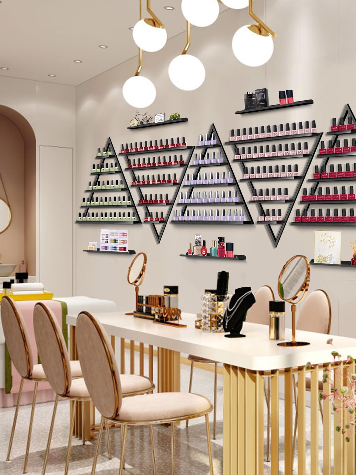 - 【Multi Function】: The triangular shelves are not only suitable for nail salons but also for home use, spa, and shop, perfect for interior decoration, do not take up much space and aesthetically pleasing, can be used to accommodate kinds of items like cosmetic bottles, perfume, lipstick, vase, eyeglasses, photo frame, etc.