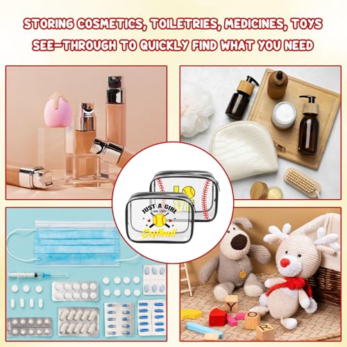 12 Pcs Softball Clear Cosmetic Bags For Women 7.1 x 4.7 x 2.4'', Baseball Lover Makeup Bags, Softball Cosmetic Bag, Birthday Christmas Graduation Gifts For Baseball Players, Travel Toiletry Pouch