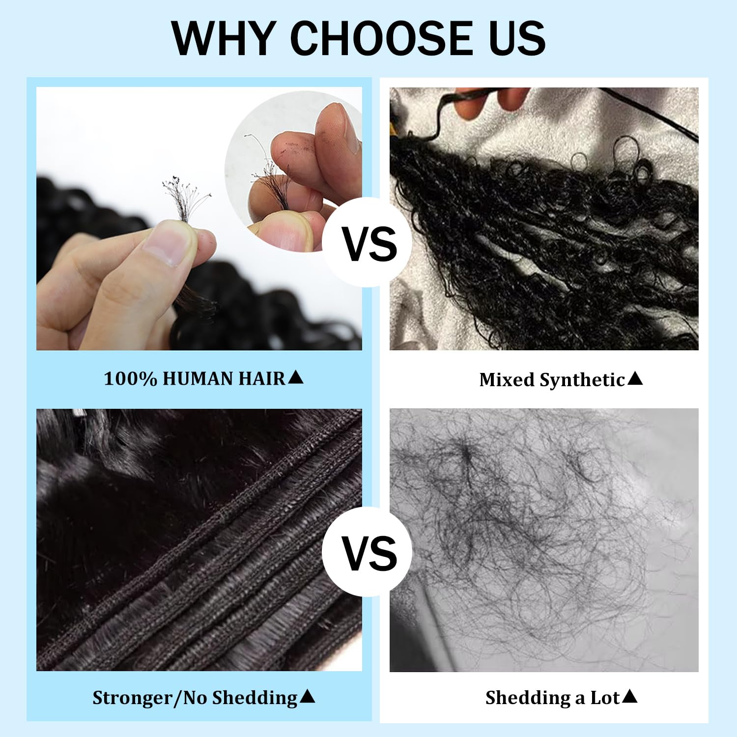 - Curly Bundles Human Hair Quality: 12A Grade Brazilian Deep Wave Bundles, Tight and Durable Double Weft, No Shedding, No Tangle, Can Be Bleached, Dyed, Colored, You Can Straighten, Iron to Try More Styles, Make You Beautiful and Bouncy Hair, Can Be Used for 6-12 Months with Careful Care.