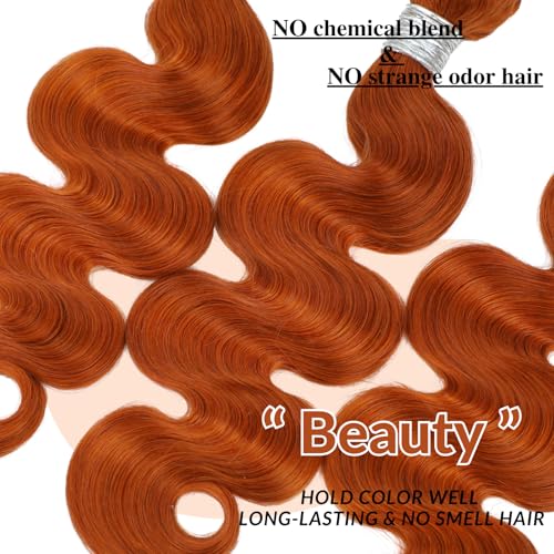 12A Ginger Body Wave Bundles Human Hair, Soft And Shed-Free Colored #350 Copper Burnt Orange 3 Bundles Double Weft 100% Unprocessed Brazilian Remy Hair Ginger Sew In Wavy 10 12 14 Inch