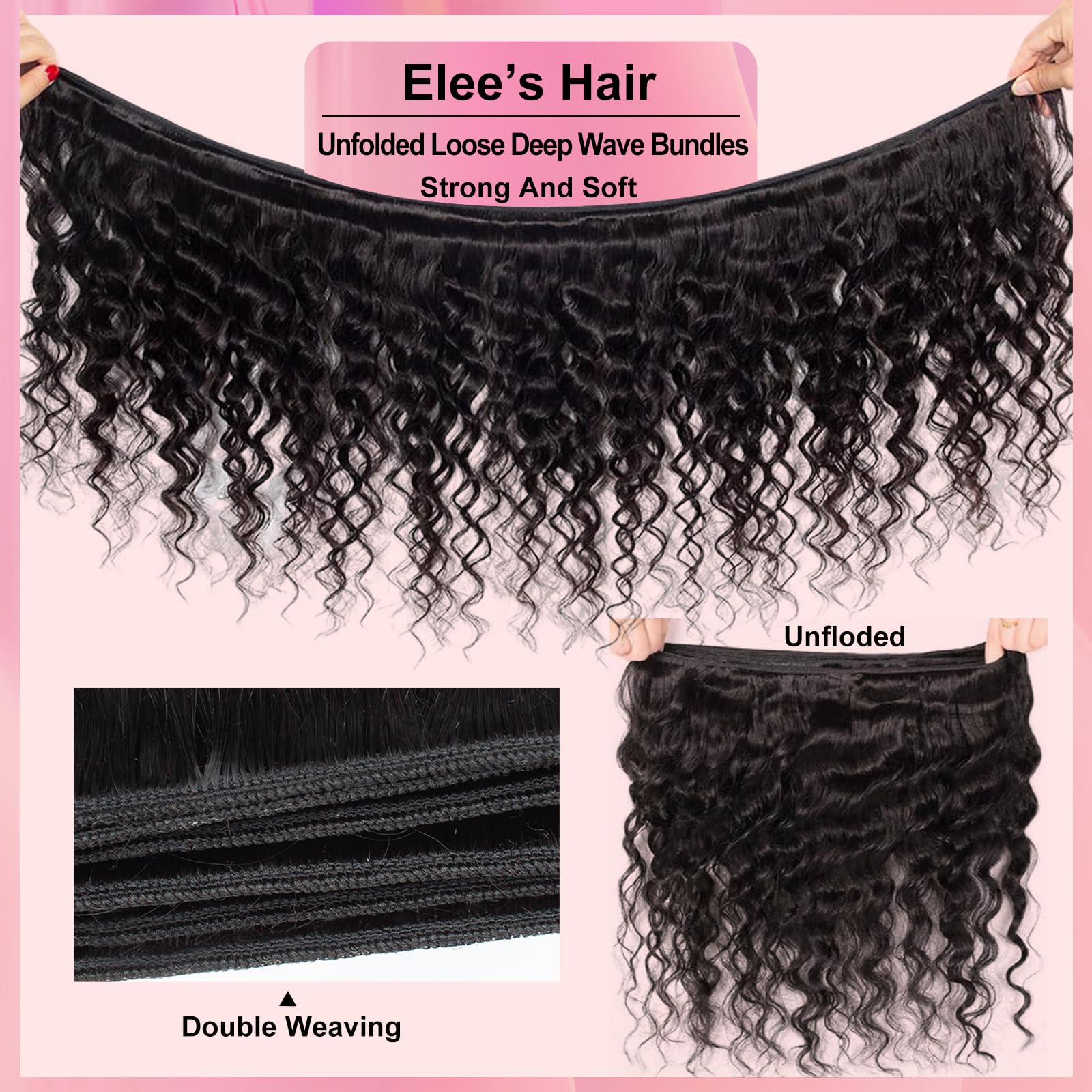 - 【Loose Deep Wave Bundles Human Hair texture】💕12A Grade Brazilian Loose Deep Wave Hair Bundles 100% Unprocessed Virgin Remy Human Hair Loose Wave Human Hair Bundles,Cut From Young Girl Head Directly, Full and Soft with Healthy Hair Ends,Loose Deep Wave Bundles Human Hair Long-Lasting, Hold the Curls Well