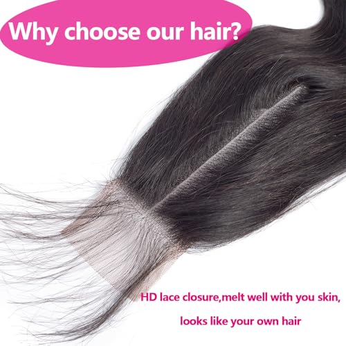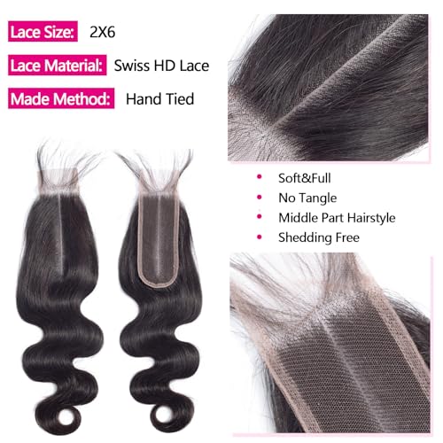 - Hair Feature: 2x6 HD Lace Closure with Bundles Human Hair, Pre Plucked with Baby Hair, Swiss HD Lace Melt Well with All Skin, Middle Part Closure with Natural Hairline, Looks Like Your Own Hair