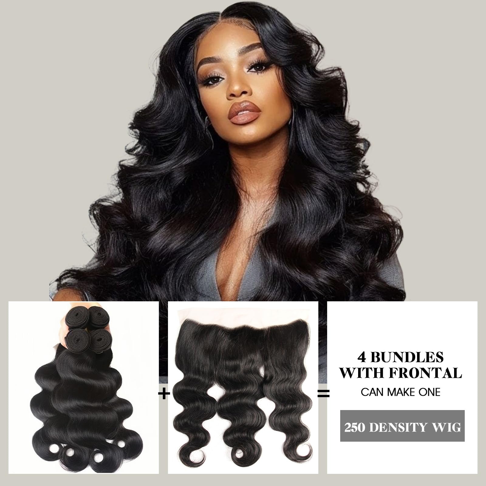 - Human Hair Bundles with Frontal Color: Natural Black Color Can be Bleached, Stretched, Can be Dyed , Permed, Highlighted, Curled or Styled Suitable for Everyday, Styled as You Like.