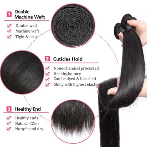 - Hair Detail: 10-30 Inch Straight Bundles with Closure Human Hair, 1B Black, 100 Grams Each Bundle, 3 Bundles Human Hair with Closure Enough to Make Sew in, Quick Weave for Women
