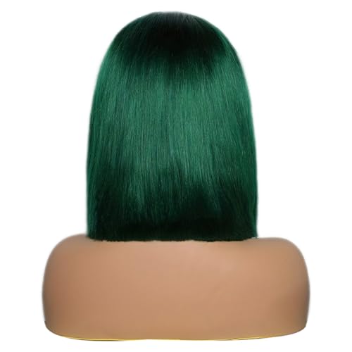 - 1, 100% Real Human Hair, No Any Blend: Our green color bob wig human hair 13x4 frontal lace wig is 100% brazilian pre colored human hair material, cut from a young girl donor; gorgeous silky, smooth, soft, stretchy, no tangle, no shedding, no smell, full and thick, reusable, can be prrmed, curled, straighted, easy to style as your needs