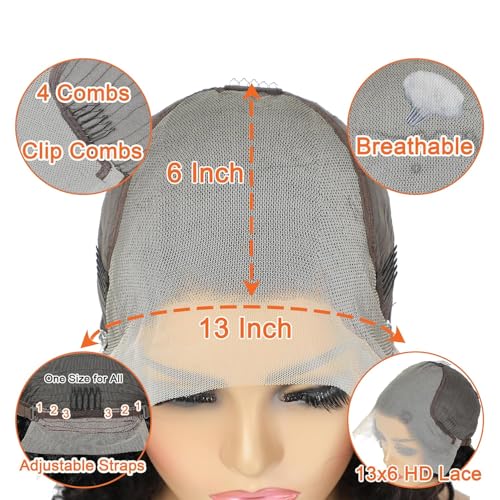 - ¡¼13x6 Lace Front Wigs Human Hair Feature¡½: 13x6 Transparent HD Lace (Invisible, Soft and Breathable), Lightly Bleached Knots. Free Parting 13x6 Lace, Can be Parted Middle Part and Side Part, No Matter Which Angle You Look at, It's Like Your Own Hair. There is 2-inch Lace in The back, Suitable for Ponytail.
