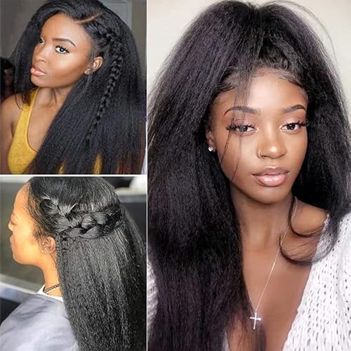 - ¡¼Yaki Kinky Straight Human Hair Wigs Advantage¡½ Pre Plucked Natural Hairline with Baby Hair Around,Soft&Durable.180% Density Yaki Kinky Straight Human Hair Wigs Full and Thick, True to Length and Weight.Can Be Dyed, Bleached, Premed,Straightened and Restyled.