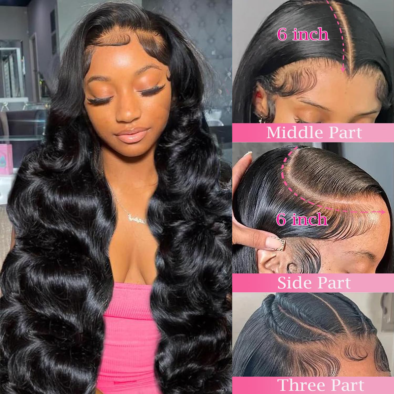 - 【HD Lace Front Wigs Human Hair Advantage】200% Density Body Wave Human Hair Wig Full and Thick, No Smell, Soft, Shedding Free, Tangles Free,True to Length and Weight.Swiss Lace Suitable for All Skins,Invisible Small Hair Knots,Can Be Dyed&Bleached, Straightened and Restyled, 13x6 Deep Parting Space,Can Be Side Part, Middle Part, High Ponytail& Bun, Styled As You Like.