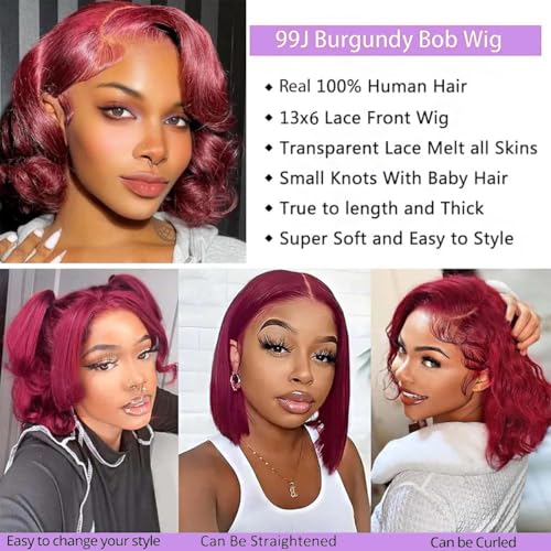 14 Inch Burgundy Bob Wig Human Hair 13x6 99j Burgundy Lace Front Wigs Human Hair Bob Wigs For Black Women 200% Density 99j 13x6 Hd Transparent Lace Front Body Wave Wigs Pre Plucked Pre Cut