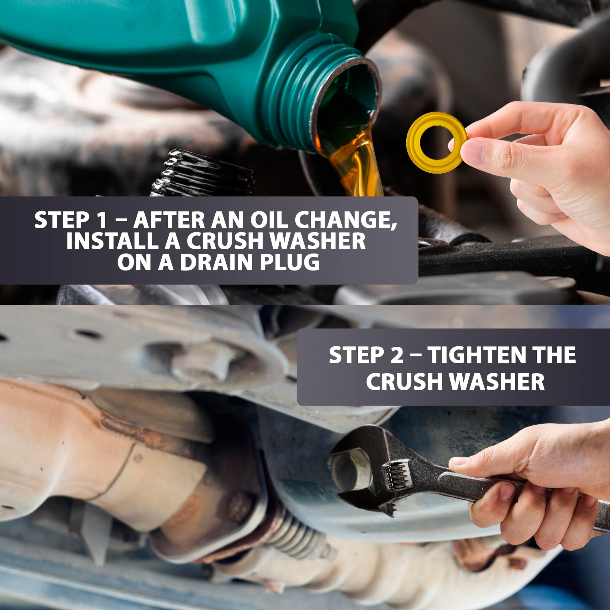 We all know the anxiety and constant double checking for leaks after every oil change. But the solution is here: we are proud to present our durable long lasting and tight sealing oil pan drain plug gasket kit.
