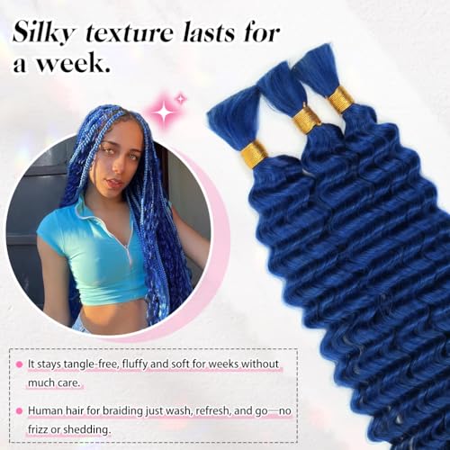16 Inch Deep Wave Human Braiding Hair for Boho Braids ? 120g 3 Bundles/Pack Blue 100% Unprocessed 12A Brazilian Virgin Human Hair Bulk, No Weft, Wet & Wavy Curly Extensions