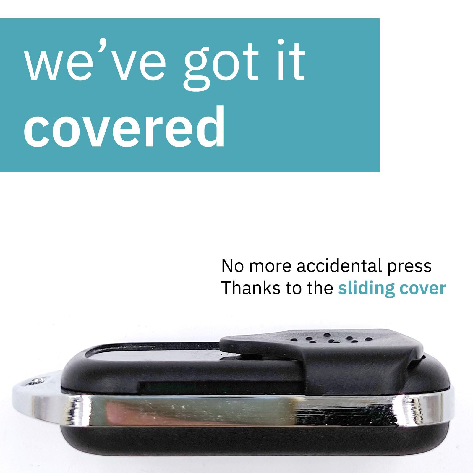 - Sliding cover protection, no more accidental press in pocket or purse. Built-in LED transmitting & low battery indicator. Latest RF technology ensures better range.