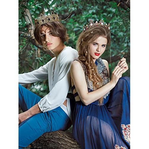 2 Pieces Baroque Crown King and Queen Crown Set for Men Women Black Rhinestone Crystal Queen Tiaras Royal Costume Crown Headwear for Prom Wedding Cosplay Homecoming Prom Christmas Party Decorations