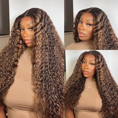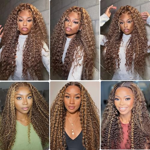 20 inch Highlight Ombre Lace Front Wig Human Hair 200 Density Honey Blonde Wig Human Hair 13x4 HD 4/27 Deep Wave Lace Frontal Wigs Pre Plucked with Baby Hair