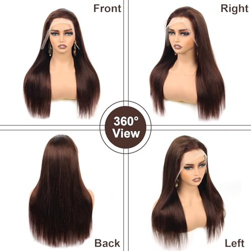 - ¡¼Chocolate Brown Human Hair Wig Straight Advantages¡½: Ear to Ear Lace Size Can Do Free Part,Middle Part, Side Part Easily,Ponytail and Braid Available.Glueless Brown Straight Wig Human Hair Pre Plucked with Baby Hair,Bleached Knots with Natural Hairline.No Tangle & No Shedding.100% Virgin Human Hair,Can Be Dyed, Bleached, Curled, and Restyled as Your Own Hair.Easy to Care, Suitable for Most Beautiful Women.
