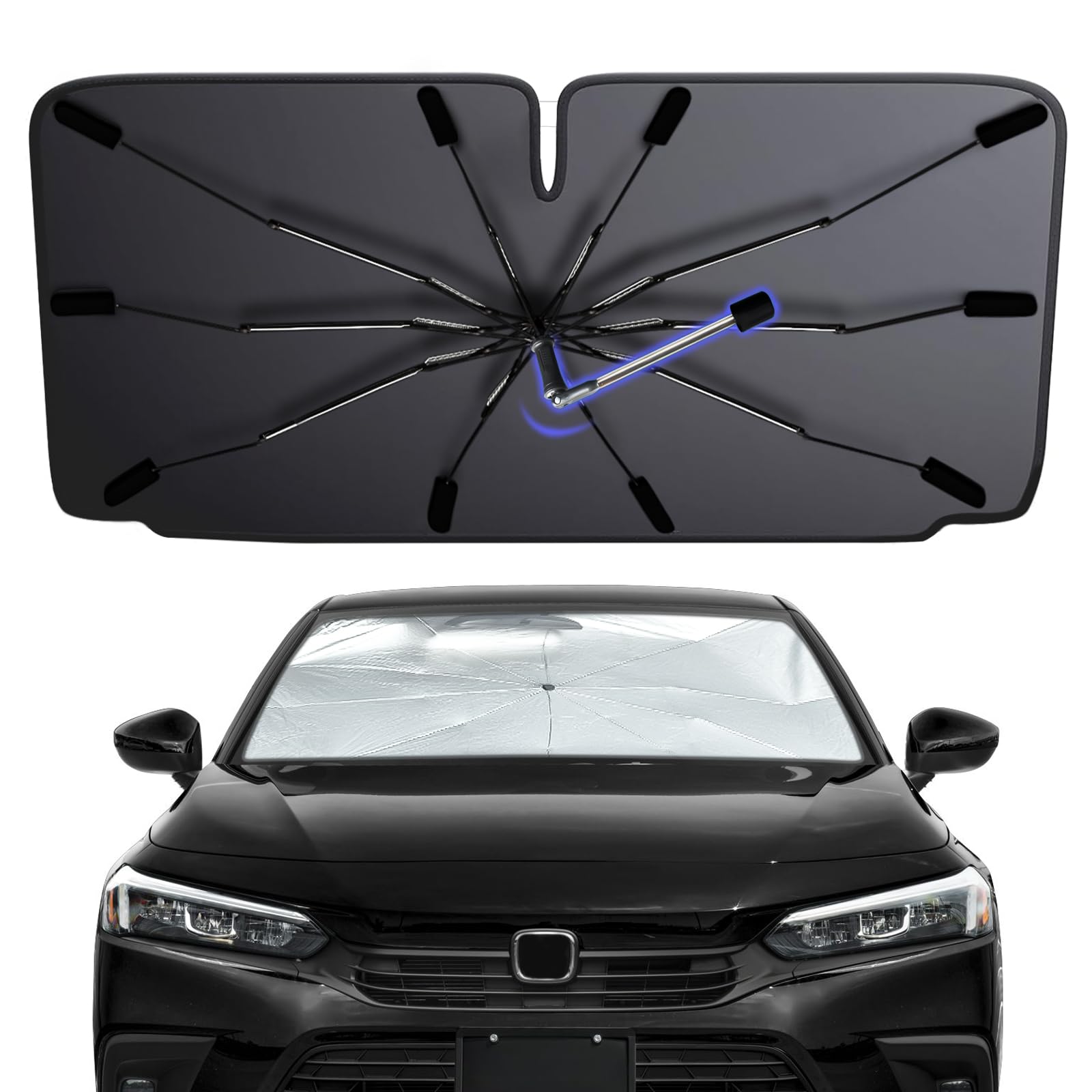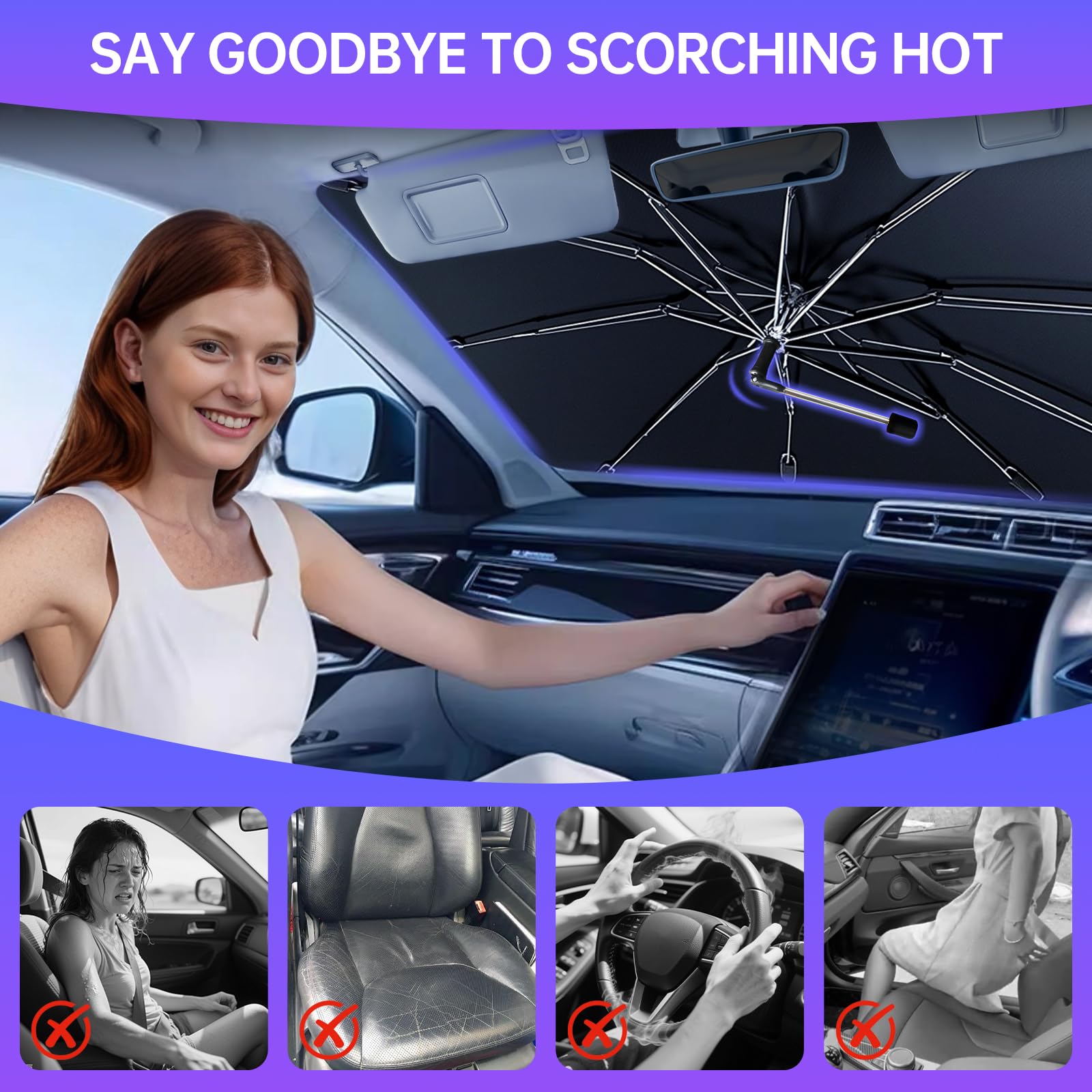 2025 Windshield Sun Shade Umbrella, Foldable Car Sunshade for Mid-Size Sedan, 360 Rotating Automotive Interior Sun Protection for 99% Heat UV Blocking, Auto Heat Shield Accessories(Medium)