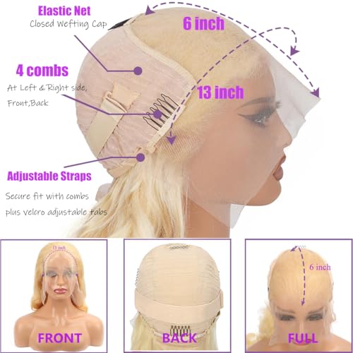 - Blonde Wig Human Hair Convenient Styling: The 2-inch lace at the back allows for stylish ponytails. The lace is curved and fits the human head better,With 4 clips and adjustable straps, our wig stays securely in place, perfect for any occasion.