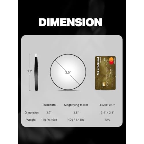 20X/30X/40X Magnifying Mirror with Suction Cups and Tweezers Set, 3.5 inches Travel Magnified Makeup Mirror, Black, 3PCS