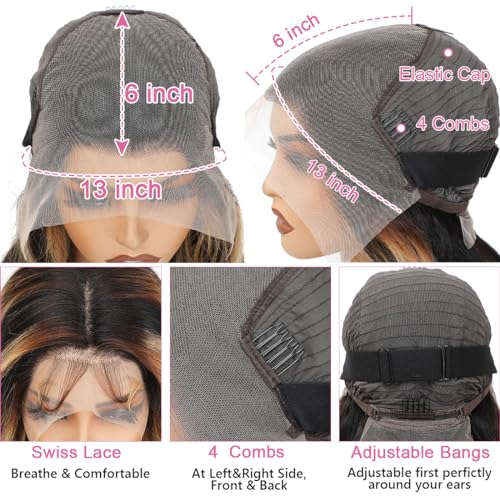 22 Inch 1B/27 13x6 Balayage Highlight Ombre Body Wave Lace Front Wigs Human Hair Honey Blonde Colored Lace Frontal Glueless Wigs Human Hair Pre Plucked for Women with Baby Hair