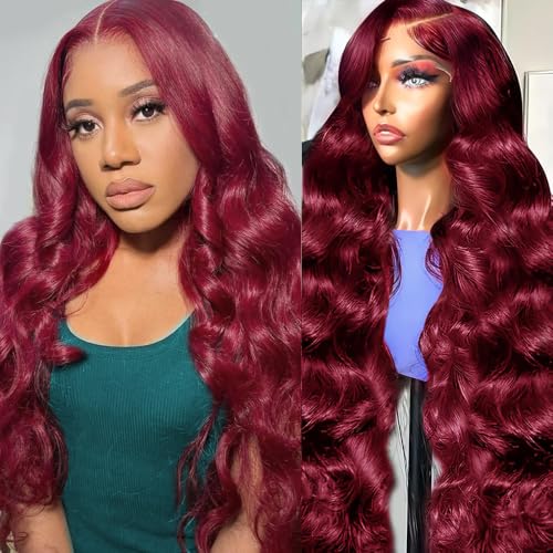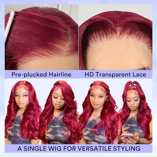 - Red Body Wave Lace Front Wigs Human Hair Quality: Burgundy Wig Human Hair, HD transparent lace melts perfectly to your skin, breathable, comfortable to wear and skin-friendly. Pre-plucked hairlines with baby hair make more realistic and gorgeous.