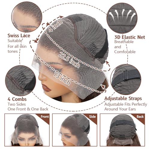 - ¡¼Chocolate Brown Wig Human Hair Quality¡½:13x4 HD Transparent Swiss Lace, Soft and Breathable, Blends Perfectly into Your Skin. Ear to Ear Transparent Swiss Lace, Natural Hairline, Pre Plucked Bleach Knots with Baby Hair. High Density, No Smell, Soft, Shedding Free, Tangles Free, True to Length, Full and Thick