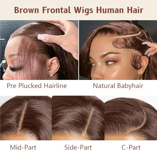 - ¡¼Chocolate Brown Human Hair Wig Advantage¡½:Supports Middle Part and Side Part, High Ponytail& Bun. The Brown Body Wave Lace Front Wigs Human Hair Is Natural and Bouncy, Can Hold the Curl well, Can Be Straighted, Dyed and Restyled as You Like. Make You Hair Style More Natural and Gorgeous