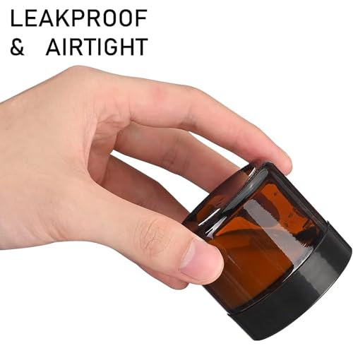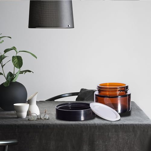 24 Pack 2 oz Round Amber Glass Cosmetic Jars with Inner Liners and Black Lids, Travel Jars, Refillable Containers for Makeup, Cream, Lotion, Sugar Scrubs, Eye Shadow, Slime, Paint, Jewelry