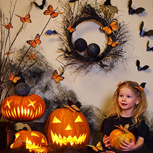 24 Pcs Monarch Butterfly Decorations Monarch Butterfly Hair Clips Feather Barrettes Clips Decor Artificial Fake Flying Creatures for Craft Cosplay Wedding Party, 4 Sizes(Orange)