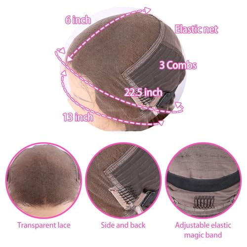 - 4/27 Highlight Lace Front Wig Human Hair Cap: Medium Cap Size(22 Inch - 22.5 Inch), With 4 Combs and Adjustable Straps Make it Fit Most People and Easier to Install and Wear