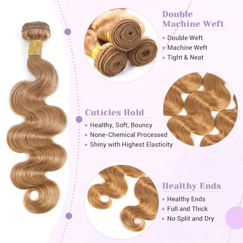 27# Honey Blonde Body Wave Bundles 100% Real Human Hair Bundles 12 14 16 Inch For Quick Weave Double Weft Can Be Dyed and Restyled