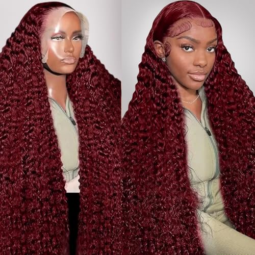 28 Inch 13x6 99j Burgundy Lace Front Wigs Human Hair Wigs For Women 180% Density 99J HD Deep Wave Lace Frontal Wigs Curly Wine Burgundy Wig Pre Plucked With Baby Hair