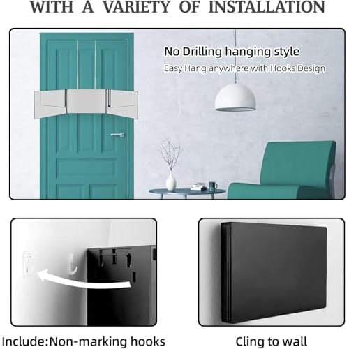 3 Way Mirror-360 Mirror for Self Hair Cutting, Adjustable & Foldable Trifold Barber Mirror with Telescoping Hooks, Barber Accessories for Men Shaving DIY Haircut Women Dyeing Makeup(Black Without LED)