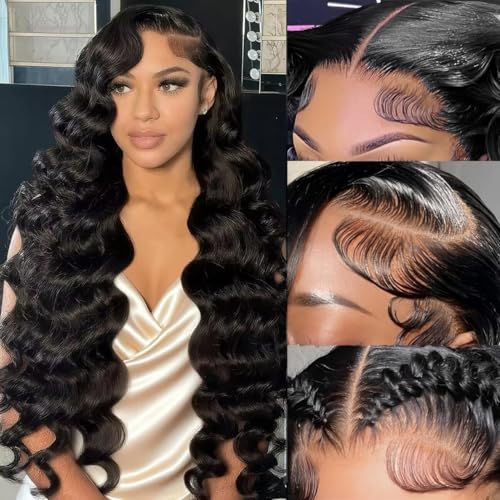 30 Inch 13x6 Loose Wave Lace Front Wigs Human Hair 220% Density HD Transparent Lace Frontal Wigs Human Hair Loose Deep Wave Wigs Pre Plucked with Baby Hair for Women
