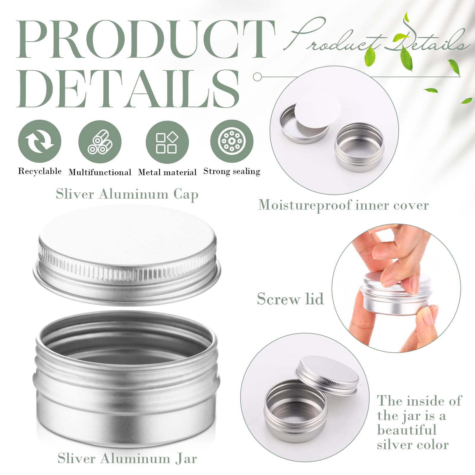 - Quality Material and Spacious Capacity: our small tin containers are made from quality aluminum, providing a reliable, durable, rust resistant storage solution; With a measurement of 1.85 x 0.94 inches/ 47 x 24 mm, each tin jar can hold around 1 oz/ 30 ml of content, making it an essential utility for your daily usage