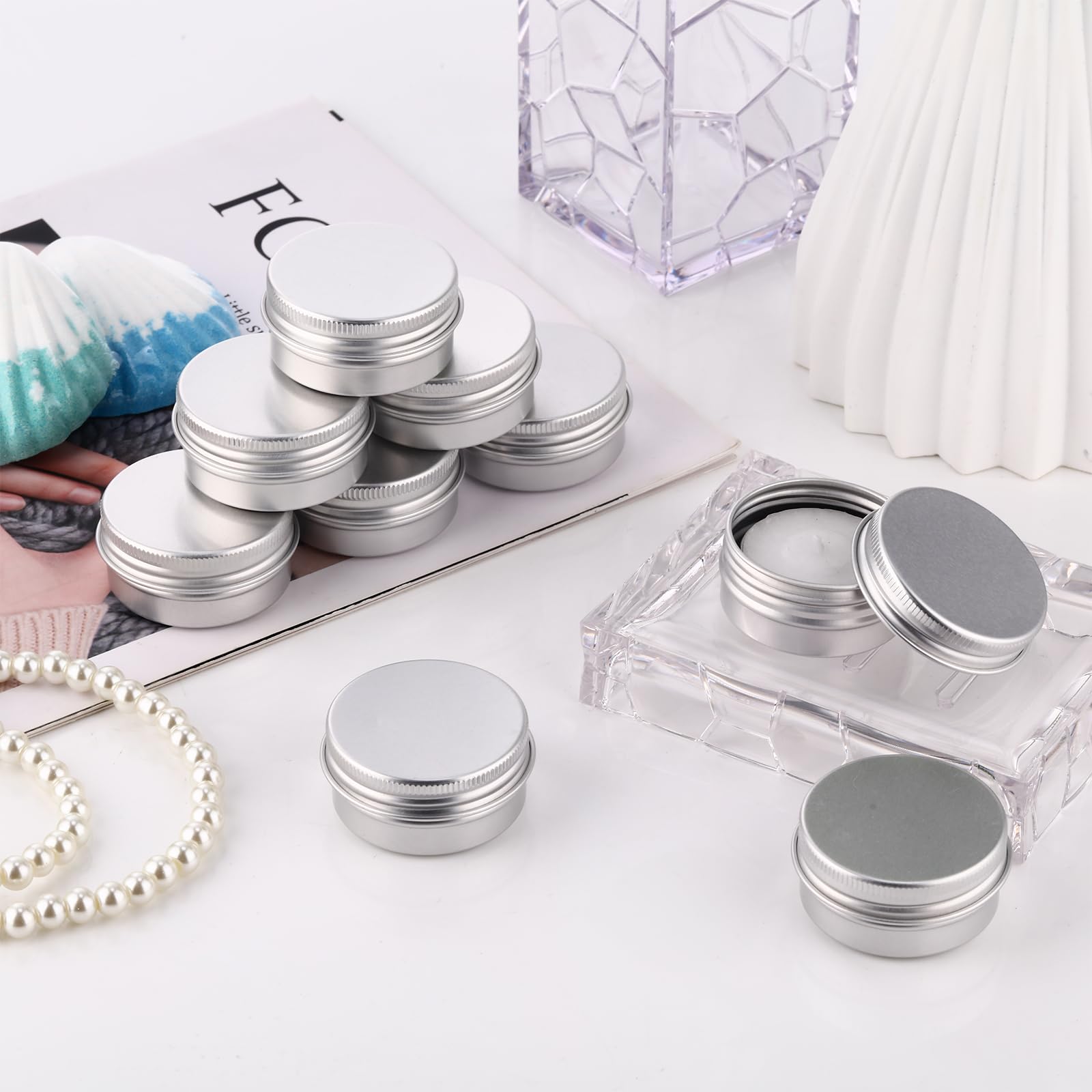 - Elegant and Practical Design: our tin containers with lids offer a combination of aesthetic appeal and practicality; They feature a compact size and sleek, silver colored design that easily fits into your backpack during travel or business trips; Due to their round edges, the chance of scratch related injuries is significantly reduced; These jars will definitely help you stay organized, mitigating clutter while being easy to carry and store