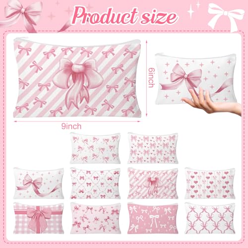 - ALL IN ONE PACKAGE:You will get 30 pieces of coquette pink bow cosmetic bag for woman in 10 different bow themed patterns,3 pieces for each style, abundant quantity and different styles can meet your daily matching use and replacement.