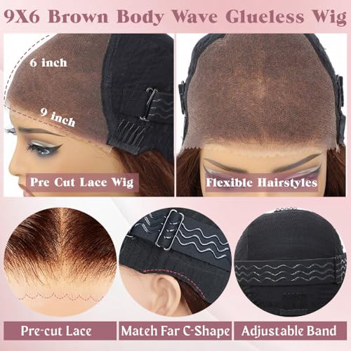 - ¡¼Brown Wear and Go Glueless Wig Cap Process¡½Medium Cap Size (21.5 - 22.5 Inch) With Adjustable Straps And 4 Combs, Human Hair 9x6 Lace Front Wigs, Wear Comfortable, Easy to Install, Durable and Easy to Adjust, Fit Most Customers Head Perfectly