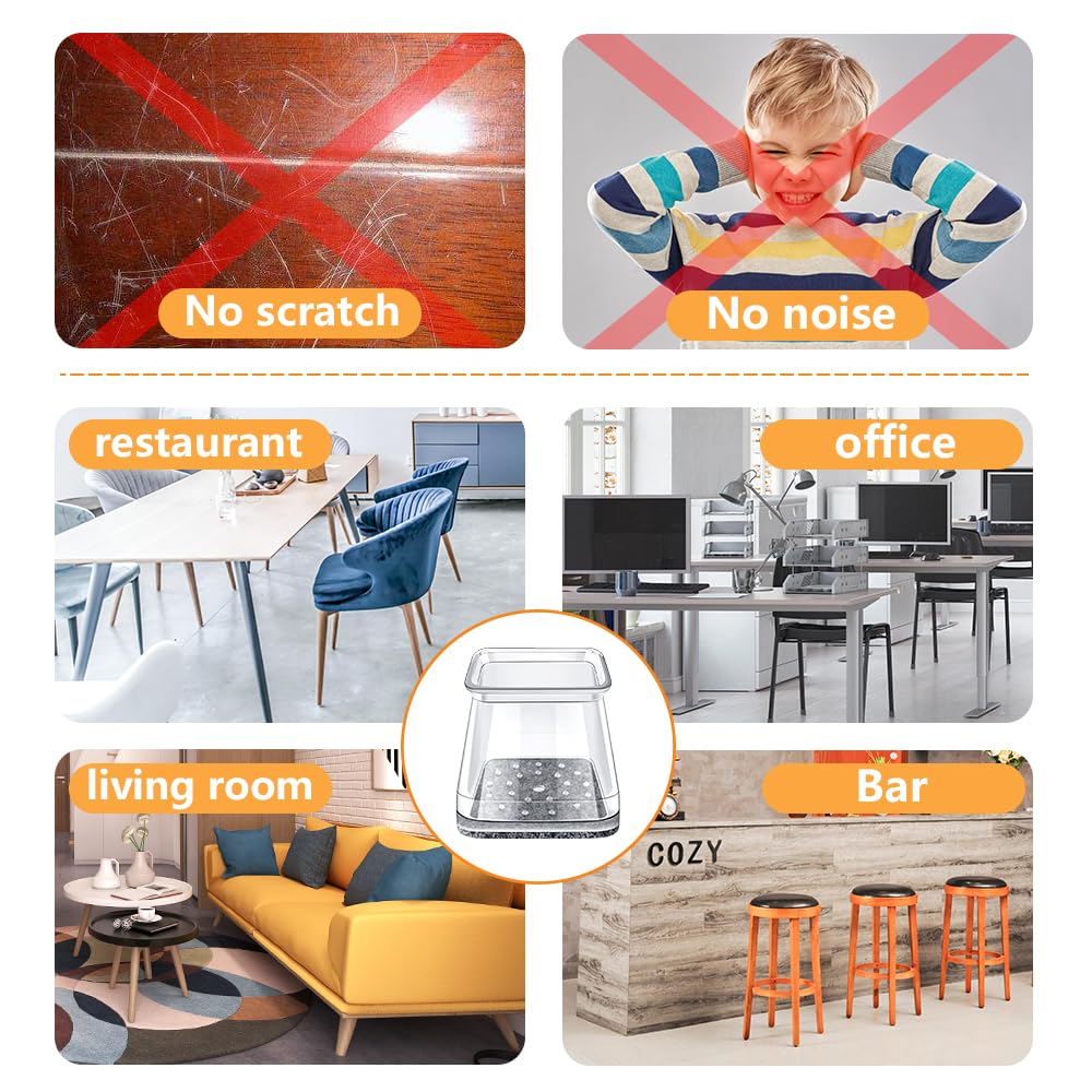 - 【The felt pad will not fall off】The package includes 32 pieces. Our upgraded Square silicone chair leg cover is equipped with a felt pad. We combine the felt and silicone into an integral part.