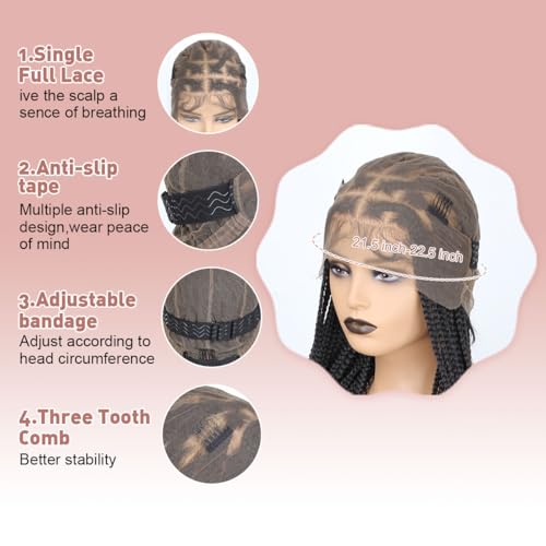 36 Inch Full Lace Braided Wigs for Black Women, 360¡Æ HD Single-layer Square Knotless Box Braid Wig with Baby Hair Handmade Synthetic Hair Blended Lace Front Wig Natural Black