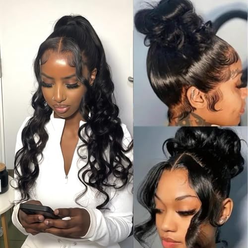 - Wigs for Black Women Advantage:Body Wave 360 Full Lace Wigs Human Hair Pre Plucked with Baby Hair, Very Natural Hairline,Can Be Done in The Middle,Side Part. You Can Easily Do High Ponytail and Bun,Wig Looks More Natural