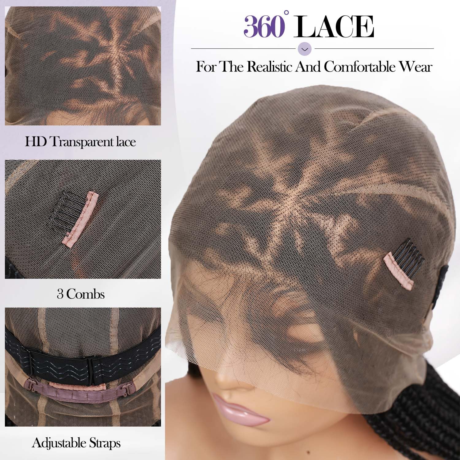 - PREMIUM CONSTRUCTION: 360-degree full lace design with knotless box braids crafted from high-quality synthetic fibers for a natural appearance