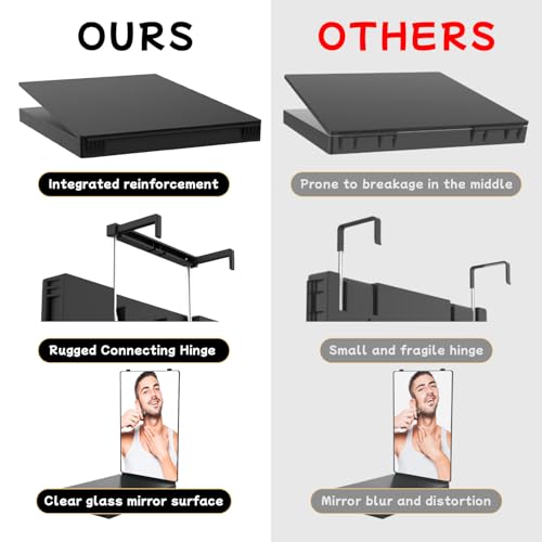 - ¡¼360¡Æ VIEWING ANGLE¡½ Made with premium ABS and HD glass, this 3-way mirror provides a true 363-degree view of your head and face. Trim, style, and groom with confidence?becoming your own barber at home.