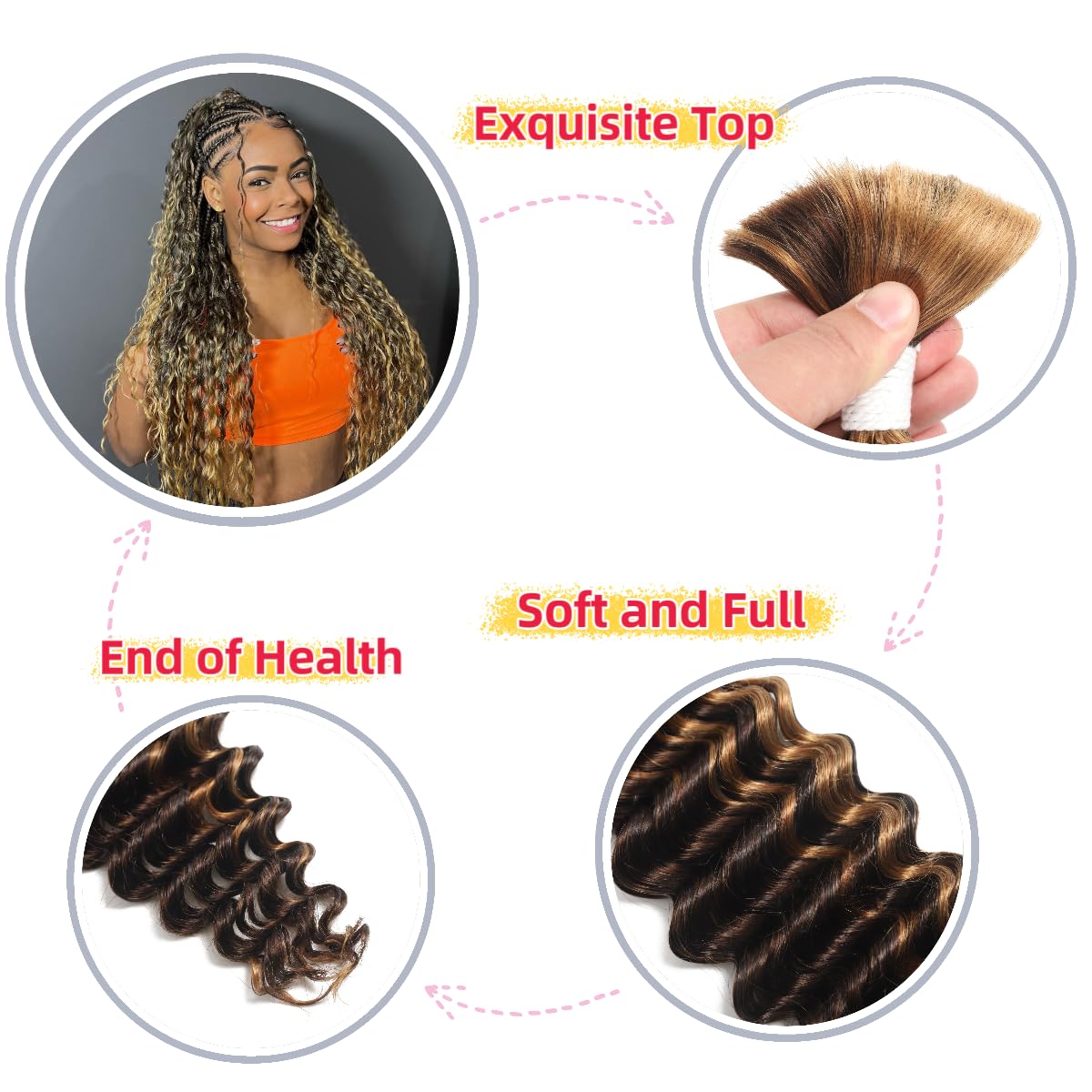 - Unique Design: The deep wave human braiding hair is specially designed for braided extensions. Unlike loose bulk human hair, the deep wave texture is gentle on your scalp and provides a silky soft feel. It can be straightened, dyed, bleached, curled, and restyled to suit your desired look