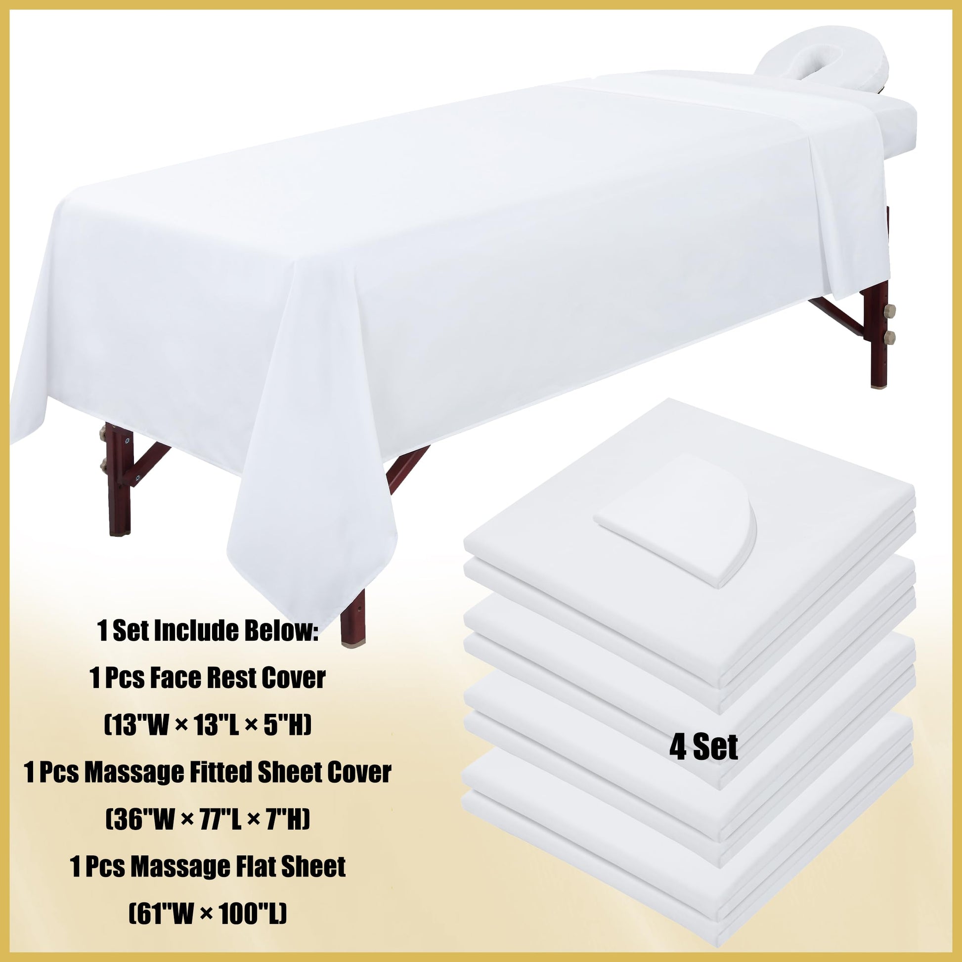 - 【FULL SURROUND MASSAGE BED SET SIZE】The size of the flat sheets is about 61 x 100 inches and the fitted sheet is about 36 x 77 x 7 inches and the face rest cover is about 13 x 13 x 5 inches which is ideal for massage pillow, so before using, you should know the size of them, in case of the bad using experience.
