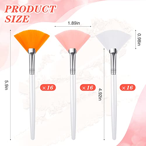 - Package Content: you will get 48 pieces of fan brushes for facials in 3 colors, including pink, white and orange, and each color has 16 pieces, to meet your daily usage needs, this makes your more portable and suitable for a variety of outings