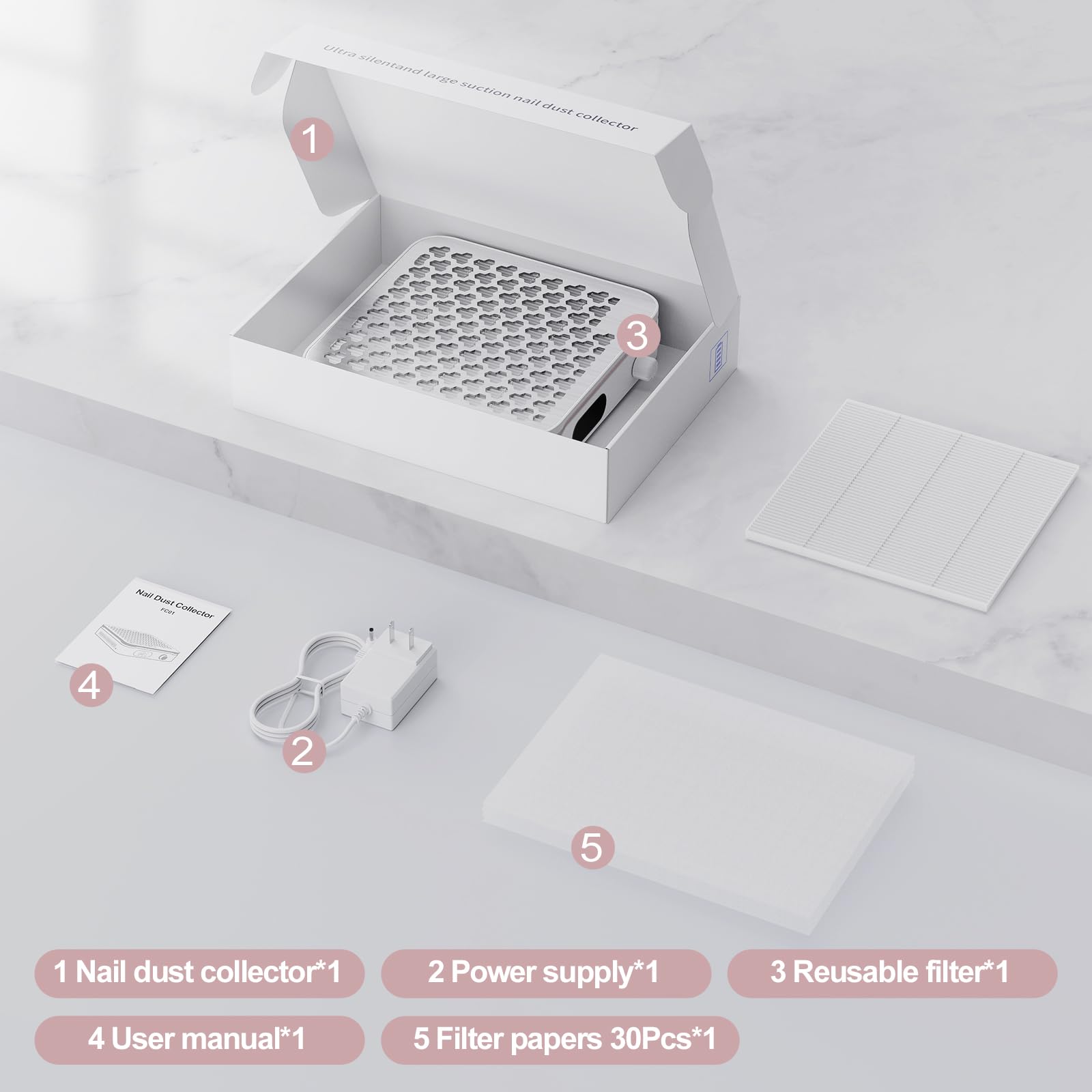- 🔇 Quiet, One-Button Operation with Sleek Design Enjoy low-noise performance and simple, one-touch control. Compact, modern, and ergonomically designed to fit neatly on any nail desk without taking up space.