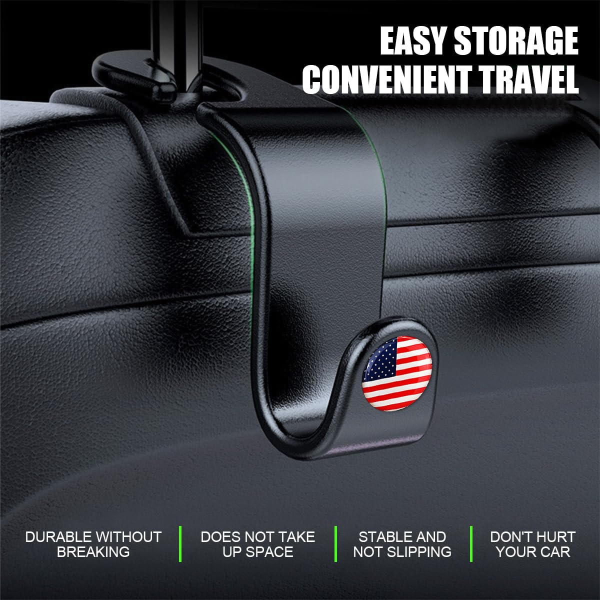 4PCS Car Seat Headrest Hooks, Auto Back Seat Hanger Holder, Durable Stylish Vehicle Organizer Universal Car Interior Accessories, Storage Hooks for Purses, Bags, Clothes, Hats (Black/Red Flag)