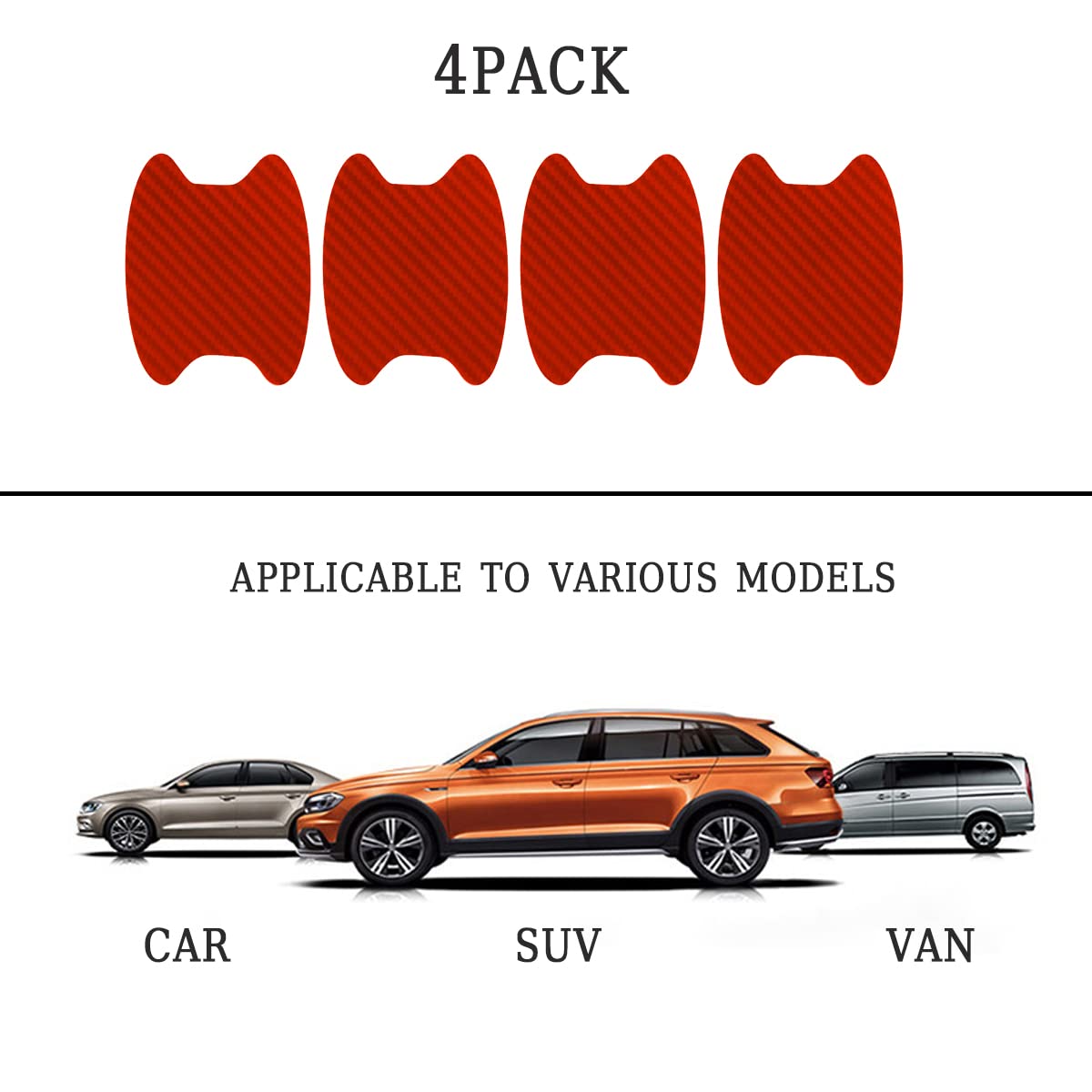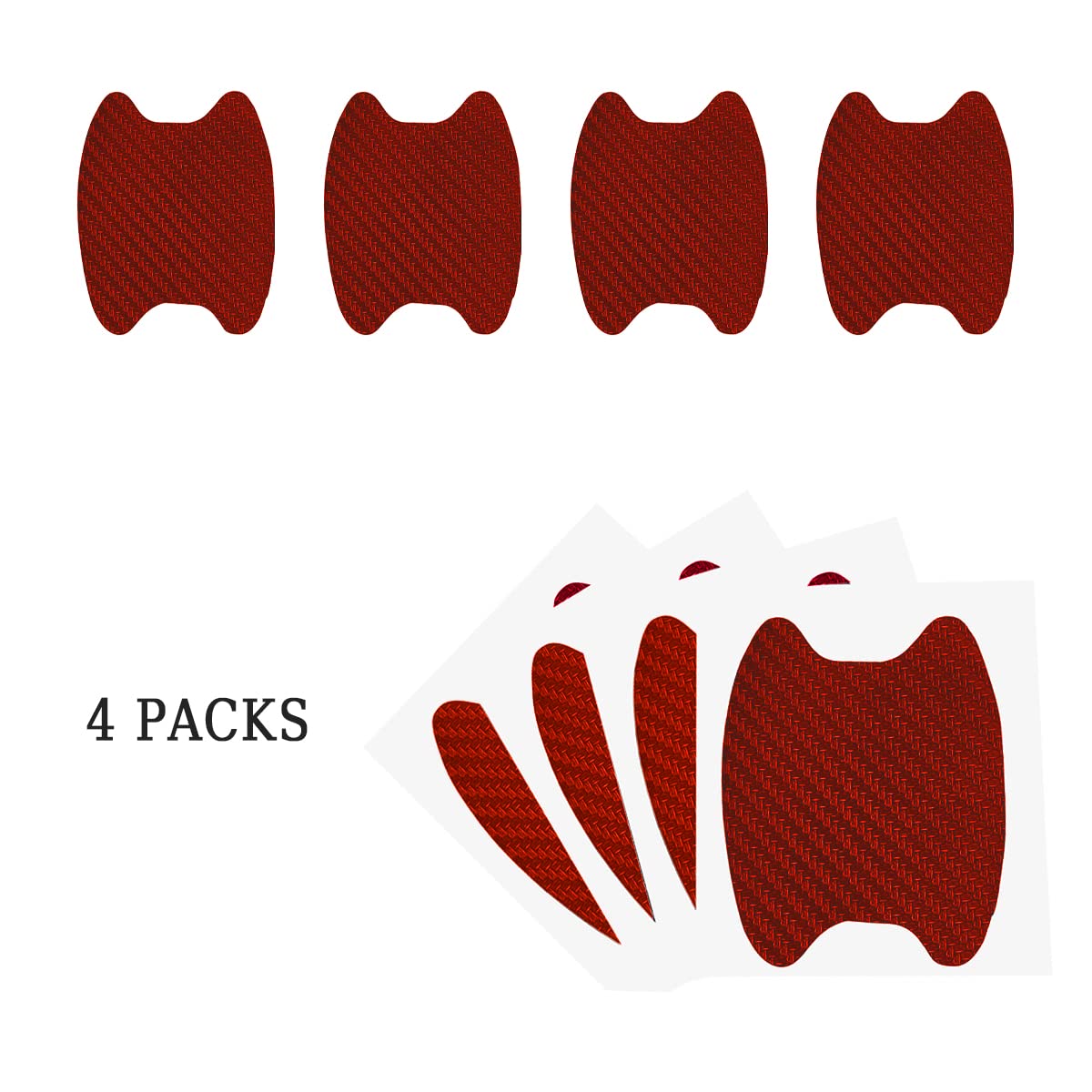 4PCS Carbon Fiber Anti-Scratches Car Cup Protector, Non-Marking Auto Door Protective Film, Universal for Most Handles (Red/4PCS)